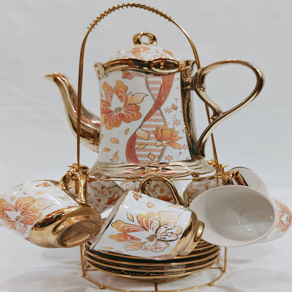 Coffee Jug & 6-Cup Set with European-Style Holder | Hanging Cups & Plates